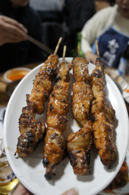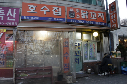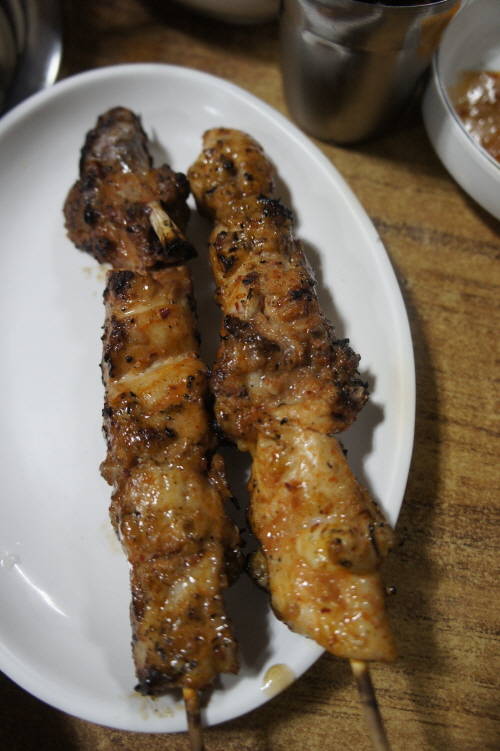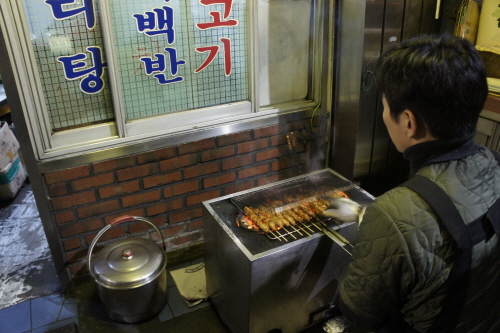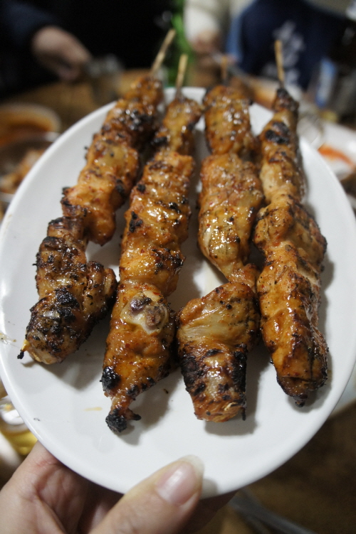 추울때나 더울때나 늘 가게 앞에서 닭꼬치를 굽는 아들사장님...노고가 많으십니다.