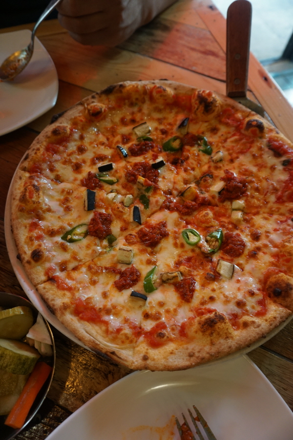 이름은 생각 안나지만 고추가 들어있어 핫했던 피자. 무엇보다 도우가 쫄깃쫄깃해서 남김 없이 먹게 되네요.