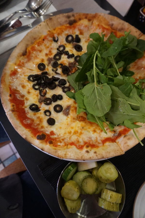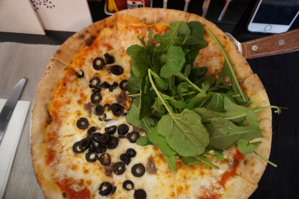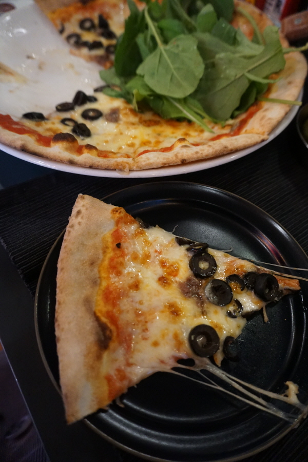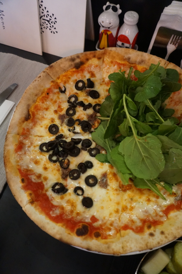 루꼴라 올라간 것 반, 올리브 올라간 것 반..이렇게 두가지 맛을 골라서 즐기수 있어 굿~