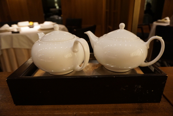 식지않도록 테이블 옆쪽에서 데워지고 있는 차.