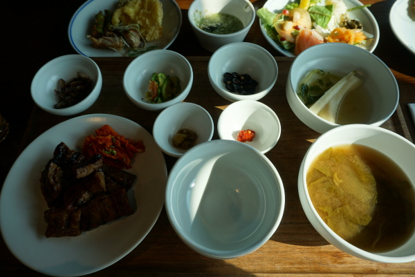 가격대는 자연별곡이나 풀잎채 등 프랜차이즈 한식뷔페보다는 좀 있는 편인데 음식 수준은 그보다는 나아보이더군요.