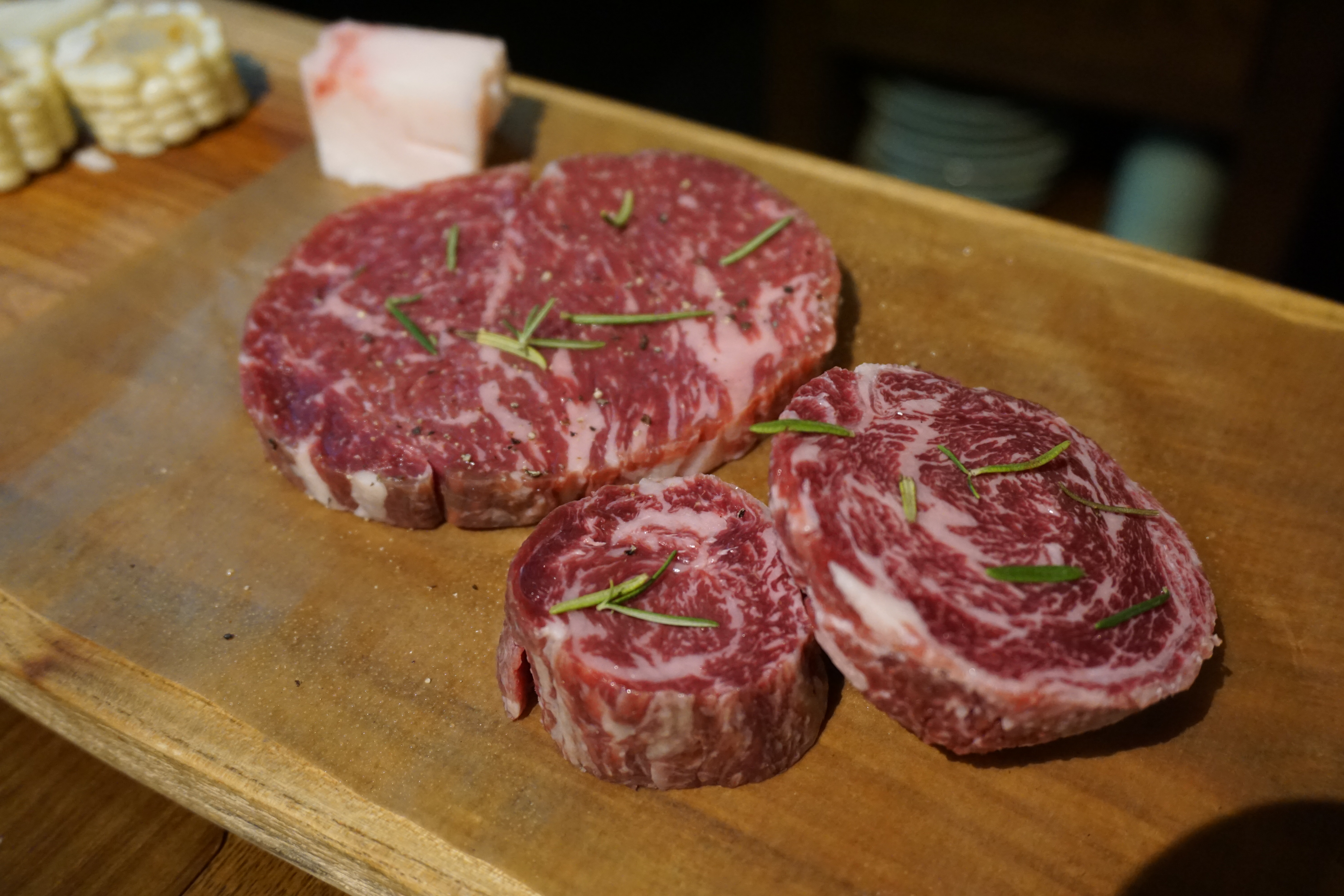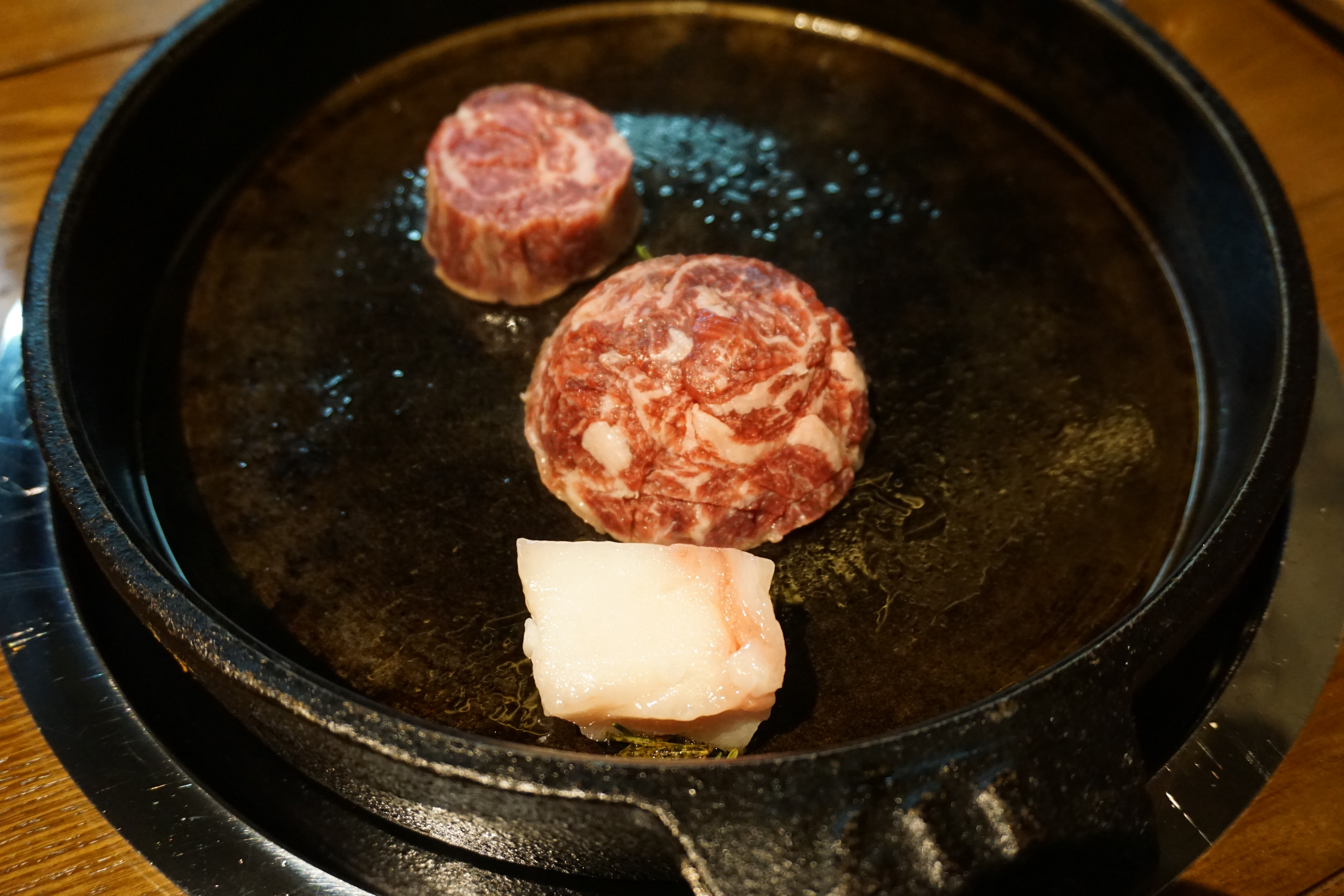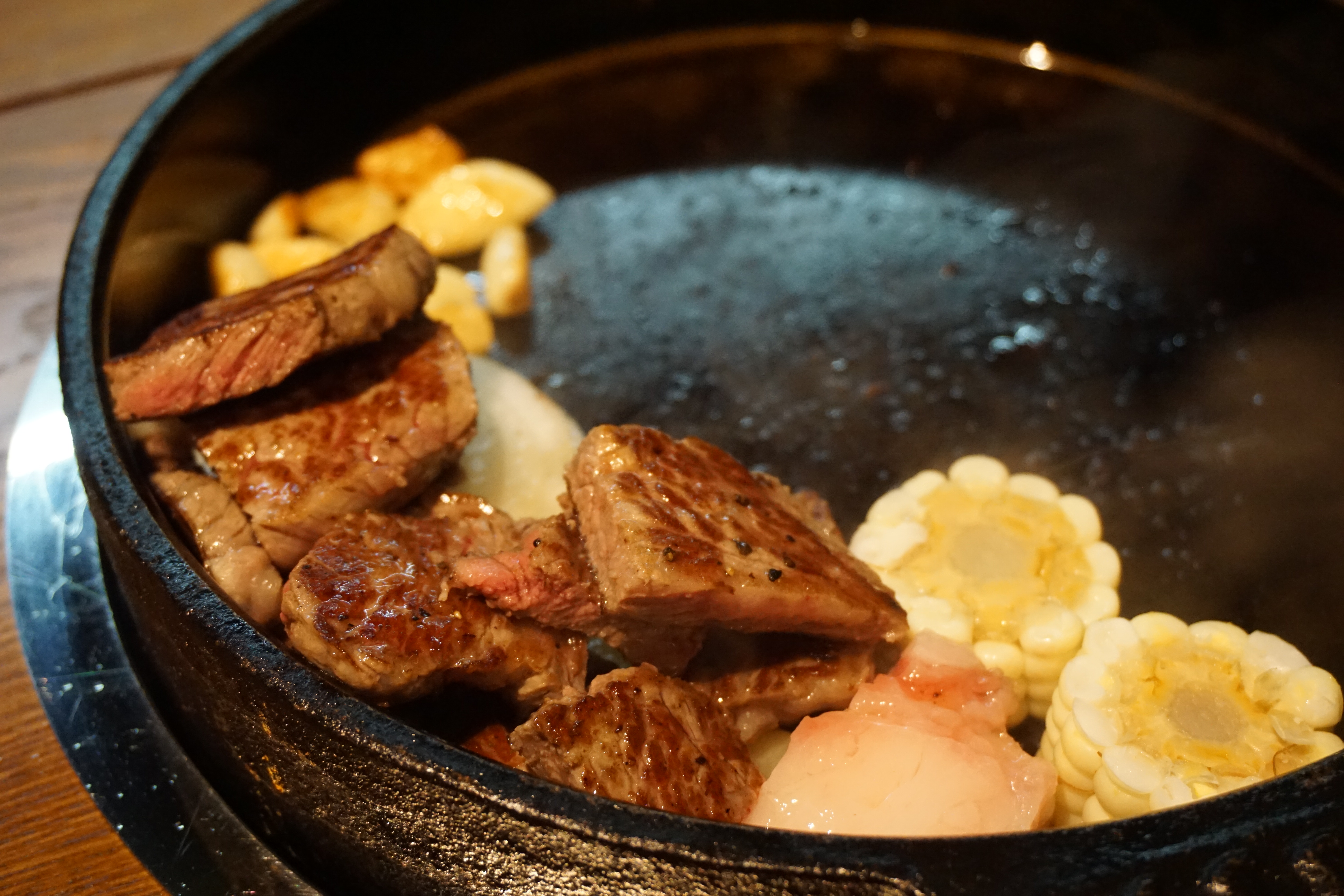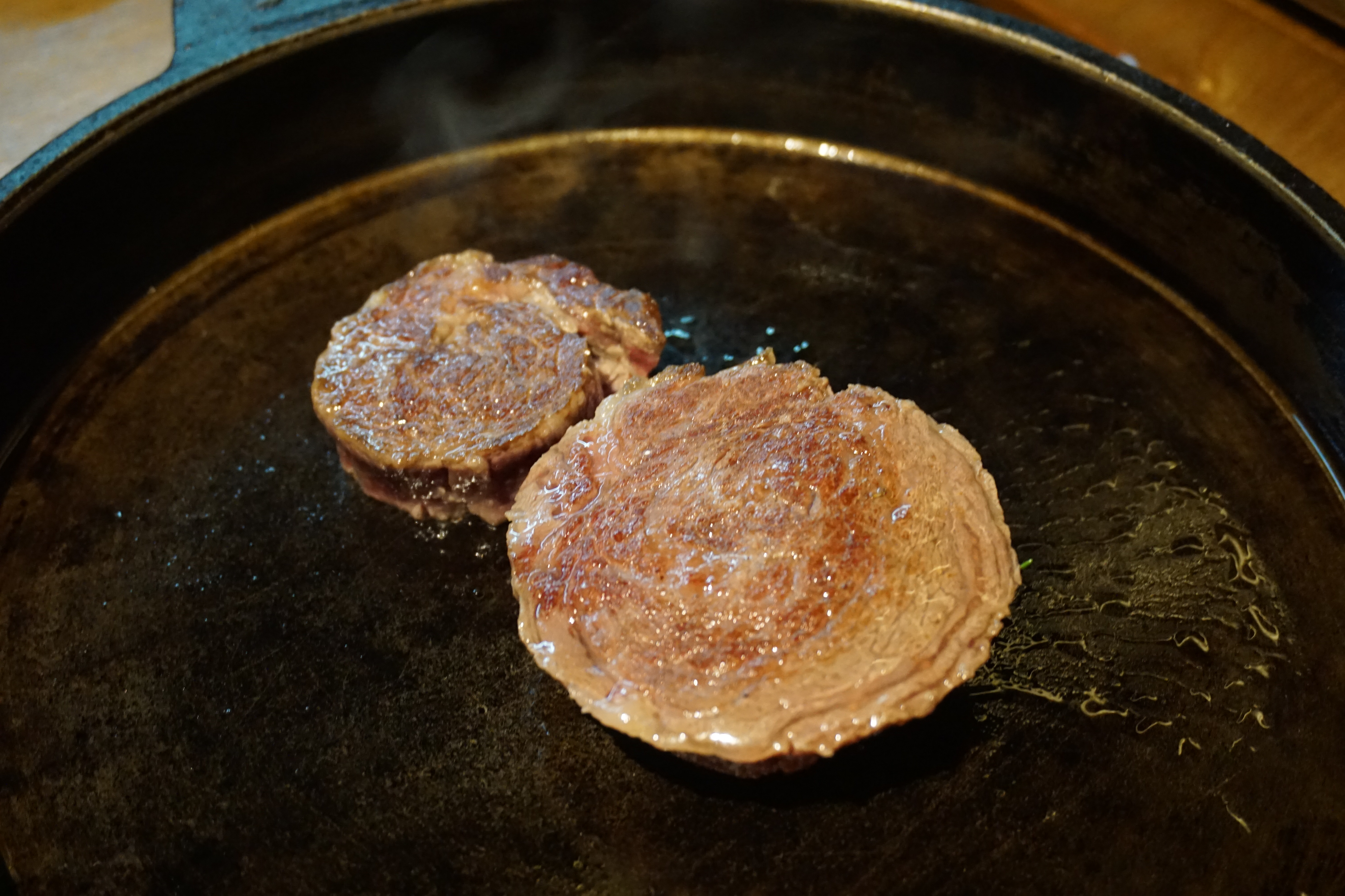 안심, 꽃등심, 새우살 등 취향에 맞는 부위의 고기를 주문하면 숙련된 직원이 철판의 온도까지 측정해 가며 제대로 구워서 앞접시까지 서빙해 줍니다. 편안히 대화하며 식사가 가능하지만, 고기 한 점 입 안에 넣으면 사르르 녹는 맛에 말을 잃을 정도.