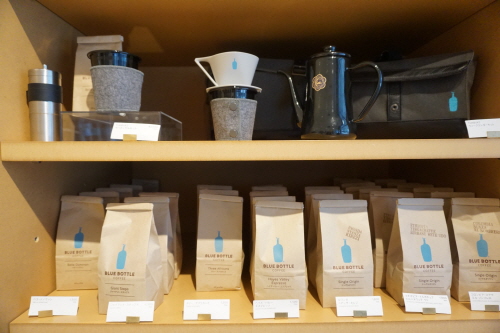 블루보틀만의 원두와 각종 커피도구들도 판매하고 있어요. 세계 어디를 가도 똑같죠.
