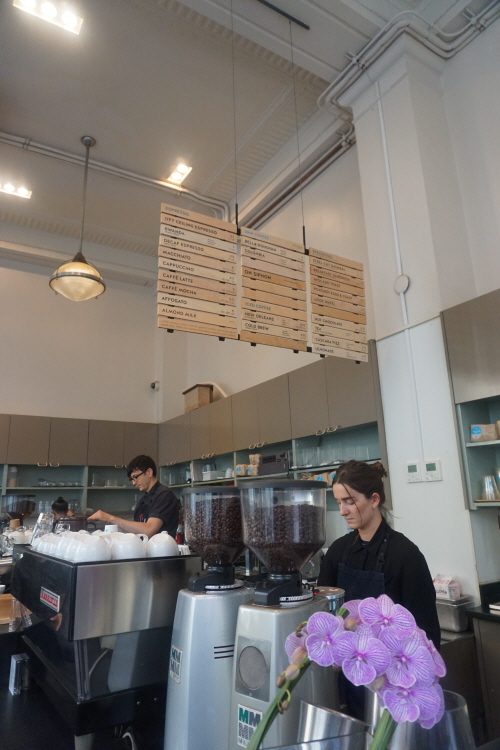 먼지 하나 없을 것 같은 깔끔한 매장. 바리스타들이 커피를 제조하는 모습도 훤히 들여다 보이고요.