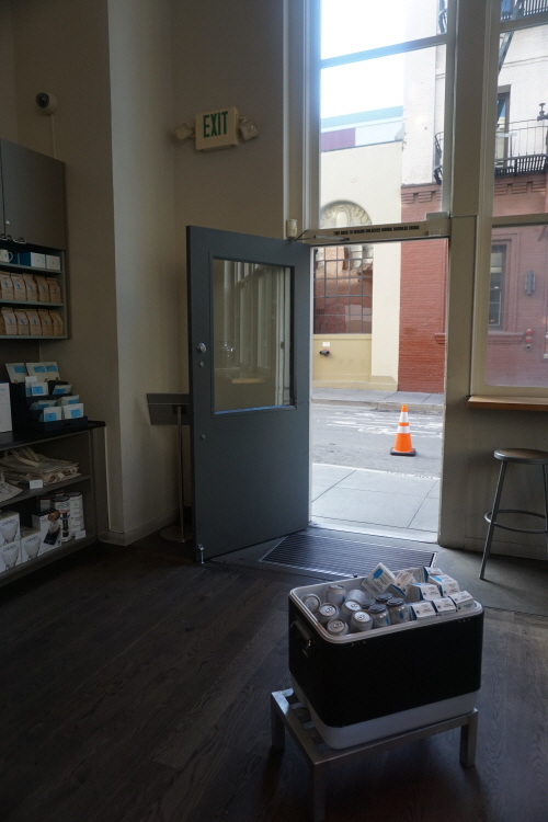 샌프란시스코 민트 스트릿에 있는 블루보틀은 매장이 작지만여유 있고 예쁜 편이라 여행자들의 인증샷에 단골로 등장하기도. 세계 어느 지점에서도 글자로 된 간판 없이 파란 병 로고만 심플하게 붙어있는 것도 취향저격.