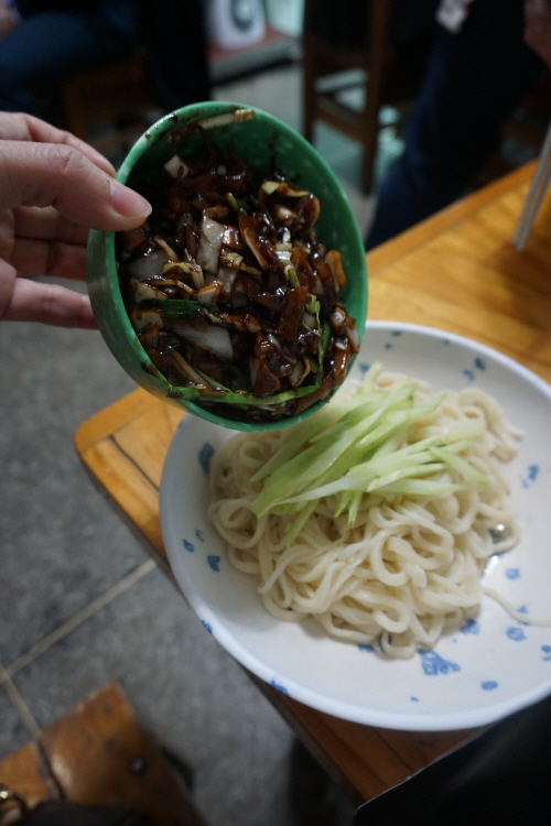 옆 테이블에서 맛있게 짜장면 드시는 이 분들,,,,사실 일행이 아니랍니다.. 모두 혼자 오셔서 합석하게 된, 하지만 만두도 쉐어해 드시는 모습 보기 좋네요 ㅎㅎ