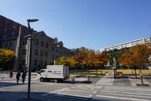 정문에서 몇백미터 걸어들어오면 오른쪽으로 학생회관 건물이 보입니다.